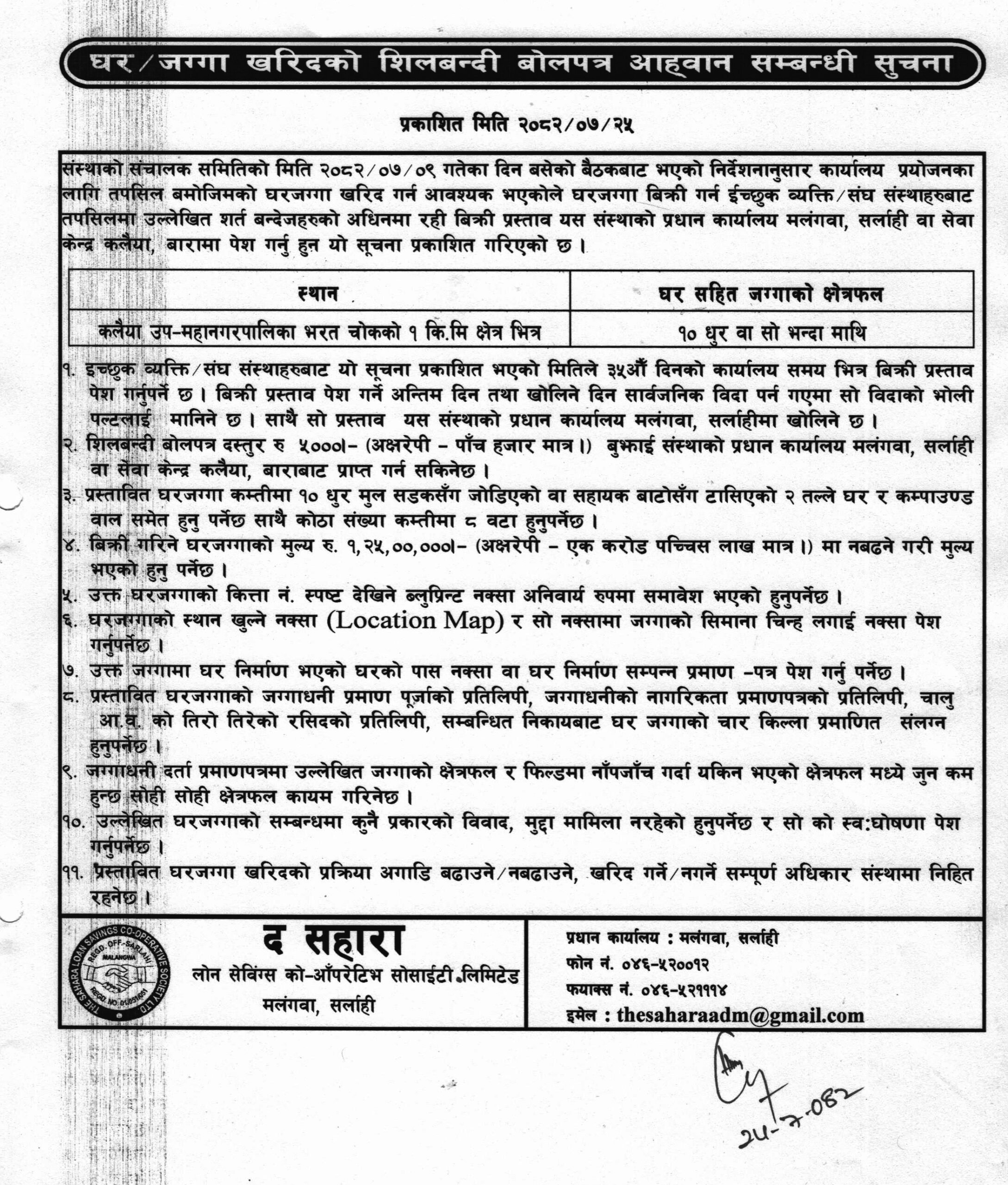 सहकारीको र्सवमान्य सिद्घान्त, मूल्य र मान्यतालाई शिरोपर गर्दै विभिन्न धर्म, जातजाती, पेशा तथा व्यवसायमा आवद्घ व्यक्ति एवं समुदायलाई एक्यवद्घ गर्दै स्वाबलम्बी, मितव्ययी र आत्मनिर्भर बनाउन नियमित रुपले बचत गर्ने बानीको विकास गर्न,संकलित बचतलाई उत्पादनशील क्षेत्रमा लगानी गर्न सदस्यहरुलाई प्रेरित गर्दै शेयर सदस्य महानुभावहरुलाई समाज र समुदायमा सरल र सहज तरिकाले आधुनिक र व्यवस्थित जीवनयापनमा सहयोग पुर्याउने उद्देश्यले द सहारा लाेन सेविंग्स काे-अपरेटिभ साेसाइटी लिमिटेड संस्थाको स्थापना गरिएको हो ।