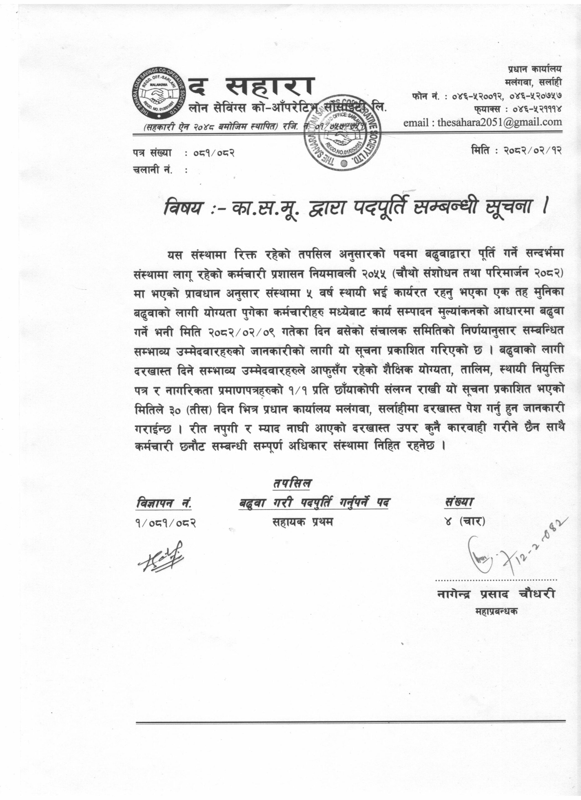 - विज्ञापन नं. २/०८१/०८२ आन्तरीक प्रतिस्पर्धाबाट स्थायी पदपुर्ती