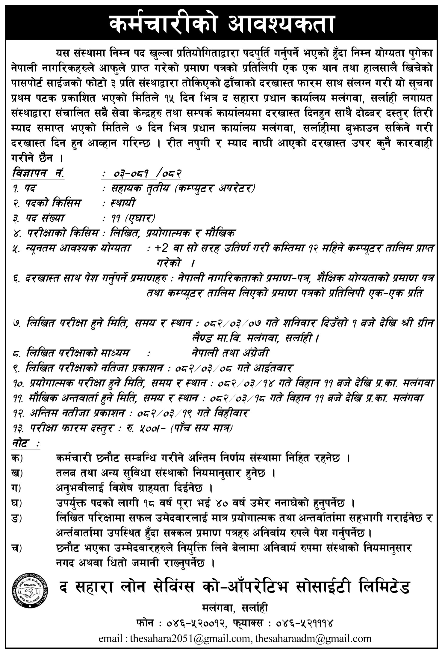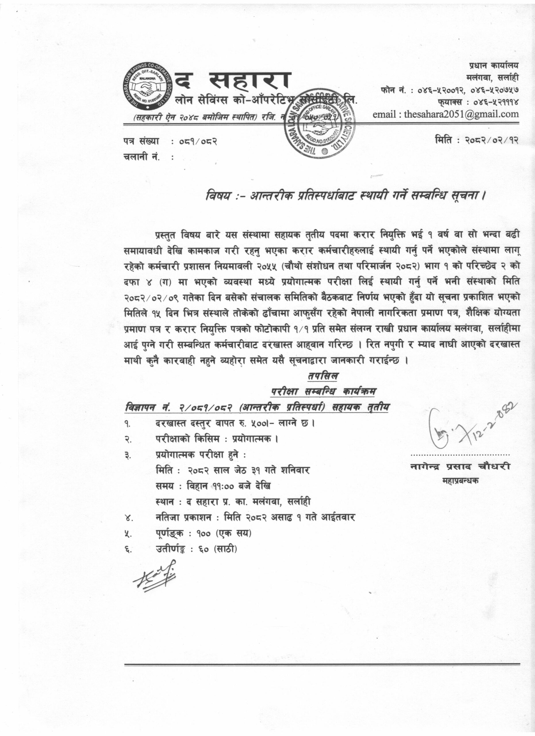 - विज्ञापन नं. ३/०८१/०८२ खुला प्रतिस्पर्धाबाट स्थायी पदपुर्ती