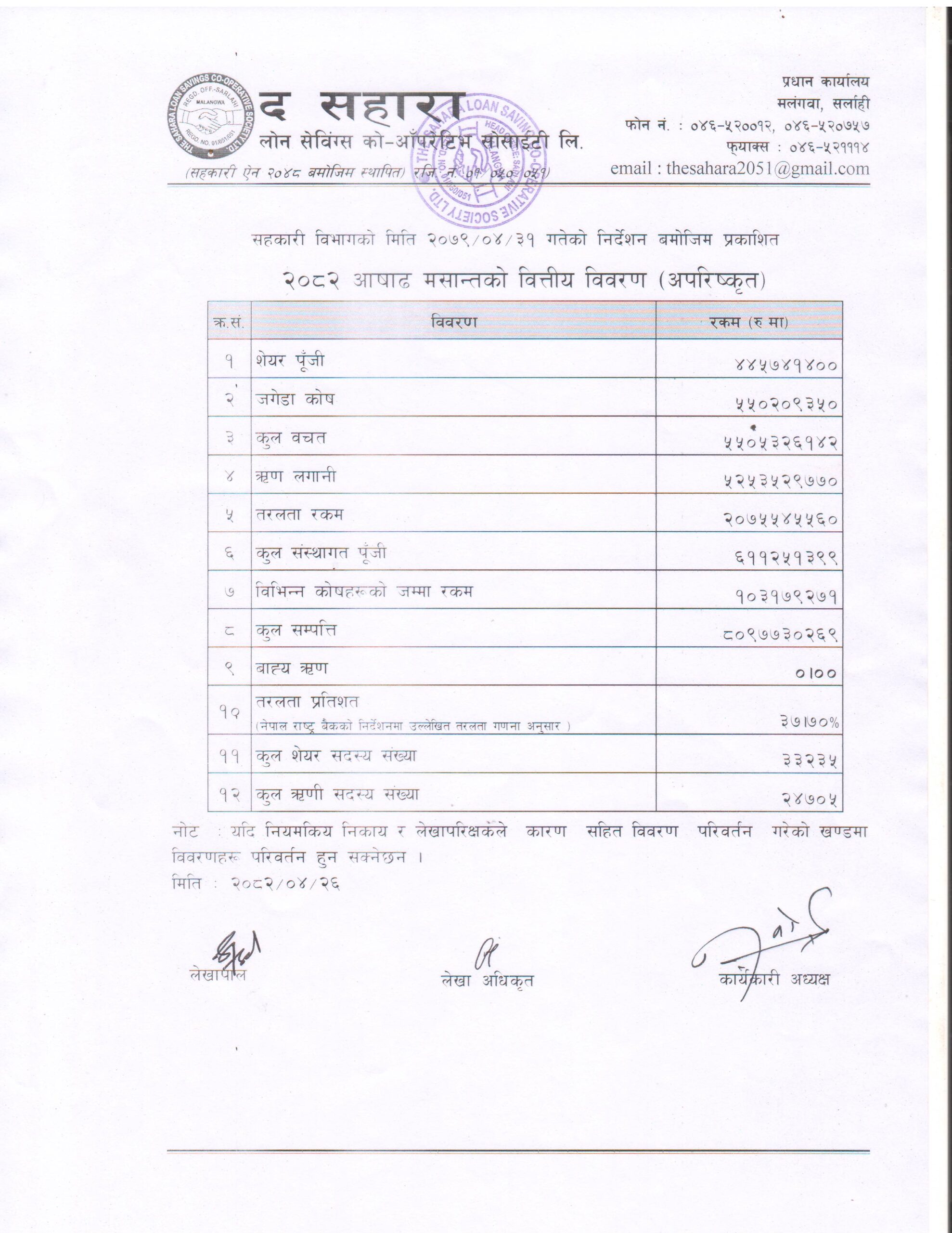 ५.२०८२ बैशाख मसान्त सम्मको बितिय विवरण Bittiya Bibran